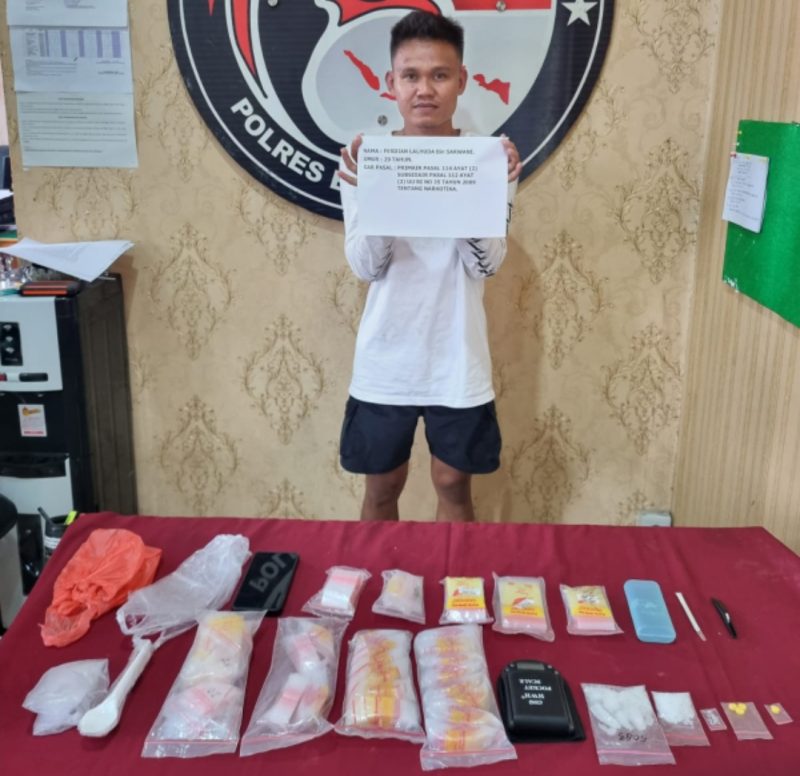 ” Setelah itu pelaku Ferdi membagi menjadi 2 (dua) paket yang mana 1(satu) paket diserahkan kepada sdr. Syukur (DPO) untuk dijual, kemudian sdr. Ferdi membagi lagi 1 (satu) paket tersebut menjadi 10 (sepuluh) paket kecil dan diserah kan kepada sdr. Falah untuk diperjual belikan,” Ungkap Kasi Humas.