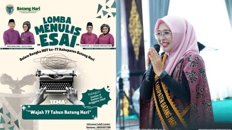 Menurutnya, HUT ke-77 merupakan waktu yang tepat untuk melakukan evaluasi, menghadirkan pemikiran, serta merumuskan harapan baru bagi Batang Hari. Karena itu, lomba esai menjadi sarana strategis untuk mendorong lahirnya pemikiran yang segar dan solutif dari internal birokrasi.