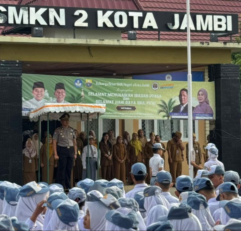 JURNALELITE.COM, JAMBI – Upacara bendera di SMKN 2 Kota Jambi, Senin (6/4/2026), berlangsung berbeda dari biasanya. Inspektur upacara (Irup) dari Polda Jambi, AKBP Dr. Dadang Djoko Karyanto, M.H., M.Pd., menekankan pentingnya penguatan karakter bagi generasi muda, khususnya siswa Sekolah Menengah Kejuruan (SMK).